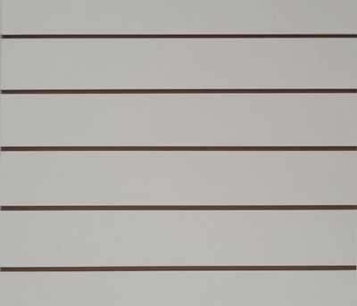 Once you have decided which material you require, you can also choose the spacing between the grooves (also named "centers"). Ourstandard centers are 100mm but you can decide to order custom slatwall with larger centers (ex: 130mm) or smaller (75mm) which will give you more grooves per slatwall sheet.